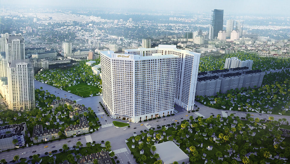 Chung cư The Emerald sử dụng phong cách kiến trúc tân cổ điển Pháp sang trọng, tinh tế cùng nhiều điểm nhấn hoa văn tinh xảo.